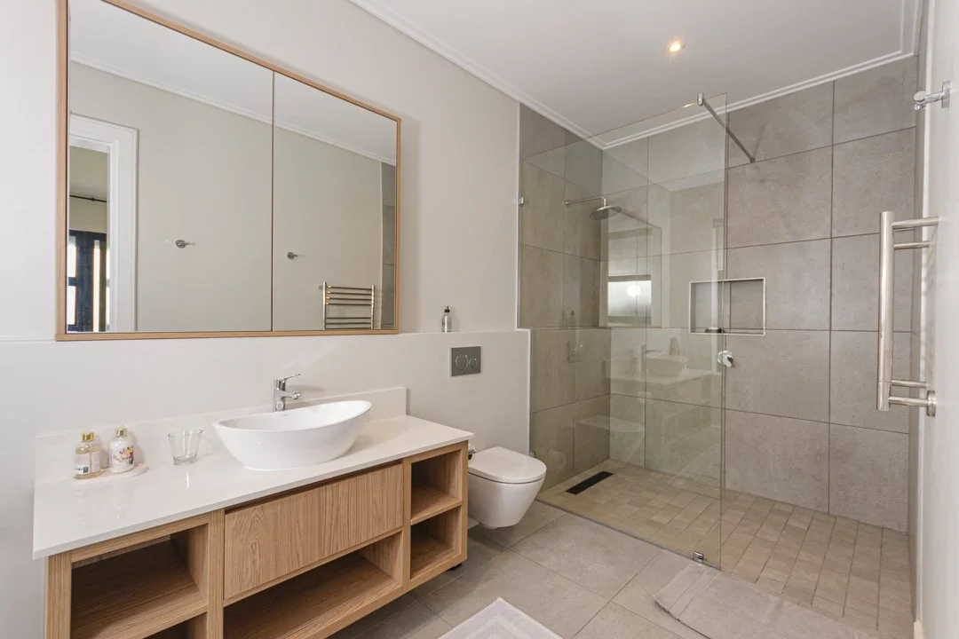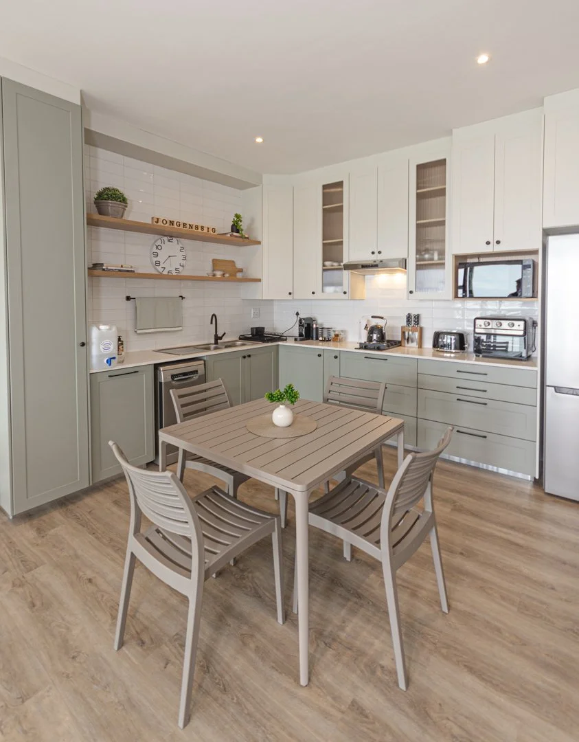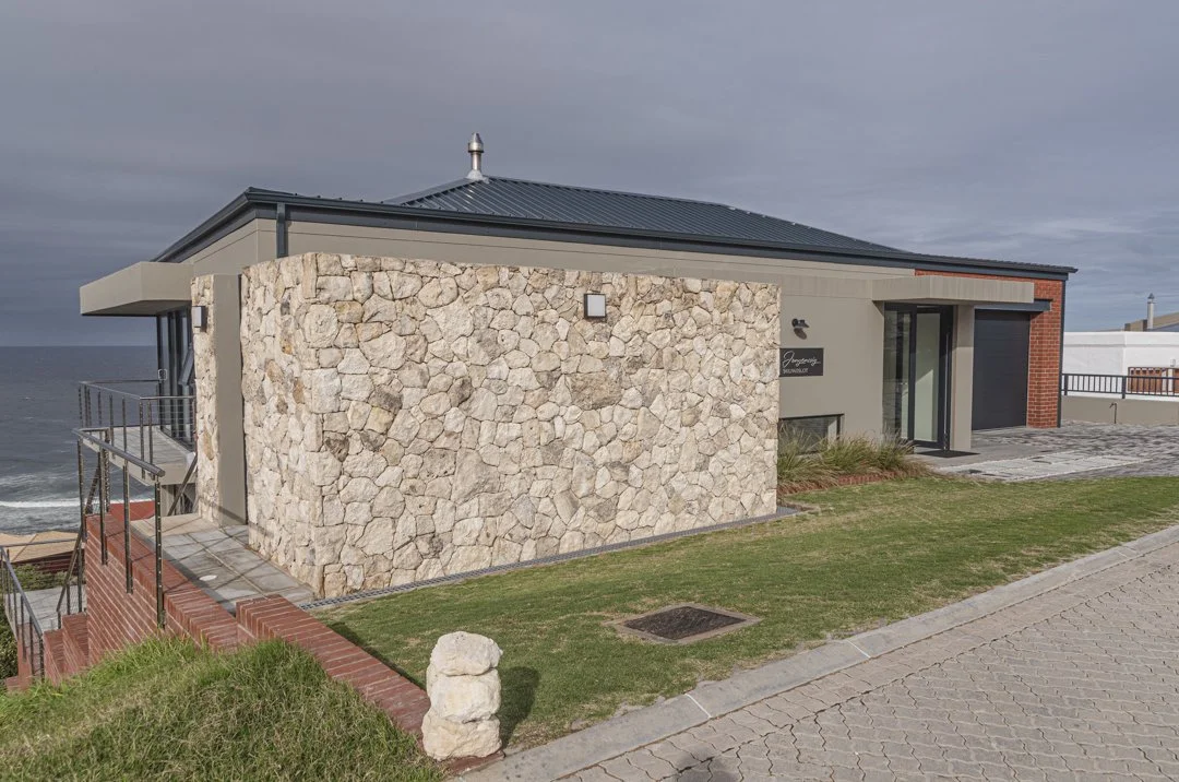 Stylish self-catering apartment with earthly, modern architecture. Two private en suite bedrooms, lounge and kitchen, situated in the quaint village of Jongensfontein on the south-coast of the Western Cape, near the coastal town of Still Bay.